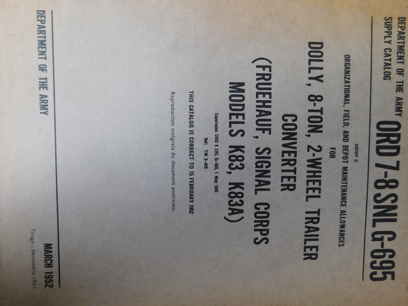 | SNL_G695_ORD_7_8_COP | Catalogue de pieces, Dolly 8ton 2-wheel Trailer Converter, FRUEHAUF, K83 (copie) |
