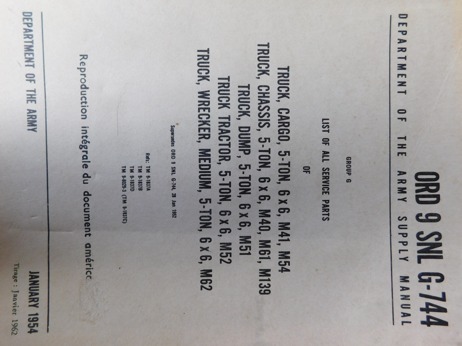 | SNL_G744_ORD_9_1952_COP | Catalogue de pieces, DIAMOND T 5ton 6X6 Truck, Cargo M41, Dump M51, 1952 (copie) |