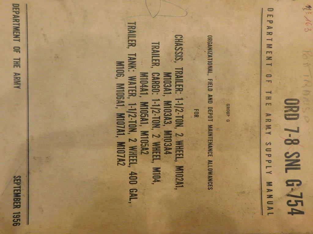 | SNL_G754_ORD_7_8_1956_COP | Catalogue de pieces, FRUEHAUF, 1 1/2ton Trailer 2-Wheel, M104 M106, 1956 (copie) |