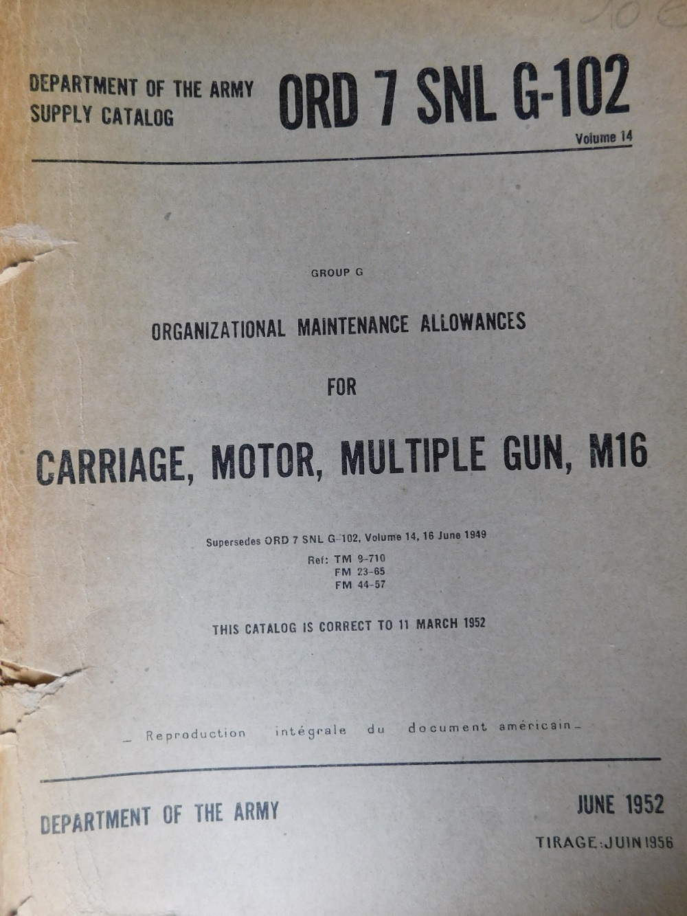 | SNL_G102_ORD_7_VOL14_COP | Catalogue de pieces, HALF-TRACK Carriage Motor Multiple Gun, M16, Vol.14 (copie) |