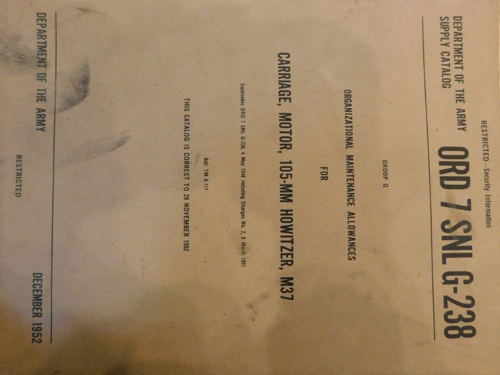 | SNL_G238_ORD_7 | Catalogue de pieces, M37, Gun, Motor, Carriage,105-mm, HOWITZER, 1952 |