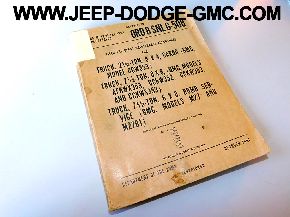 | SNL_G508_ORD_8 | Catalogue de pieces, GMC, 2 1/2 ton, 6X4, 6X6 Truck Series, M27 et M7B1 |