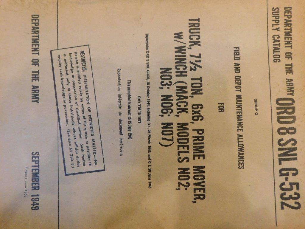 | SNL_G532_ORD_8_1949_COP | Catalogue de pieces, Mack, 7 1/2ton, 6X6 Truck, Prime Mover, Winch, 1949 (copie) |
