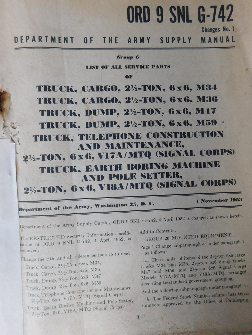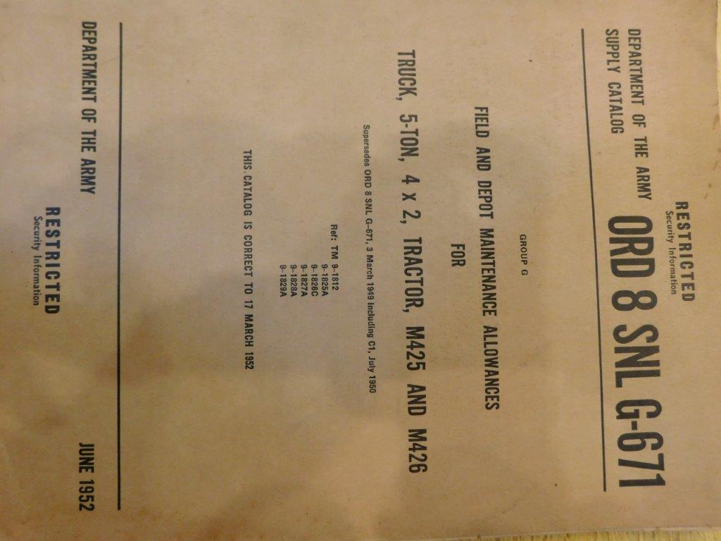 | SNL_G671_ORD_8_1952_COP | Catalogue de pieces, INTERNATIONAL Truck 5ton 4x2 Tractor M425 M426 1952 (copie) |