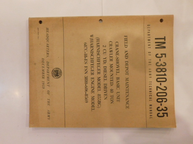 | TM5_3810_206_35_1959 | Manuel Technique Crane-Shovel Basic Unit Crawler Mounted HARNISCHFEGER 855BG |