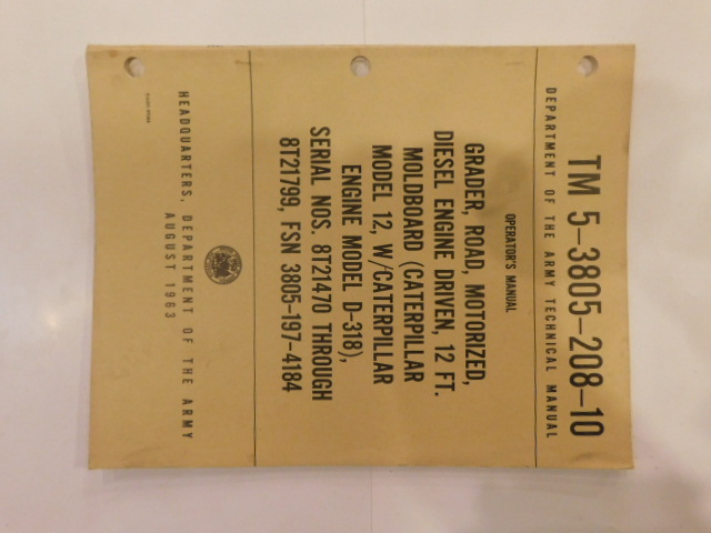 | TM5_3805_208_10_1963 | Manuel Technique Grader Road Motorized Diesel Engine Driven CATREPILLAR 12, 1963 |