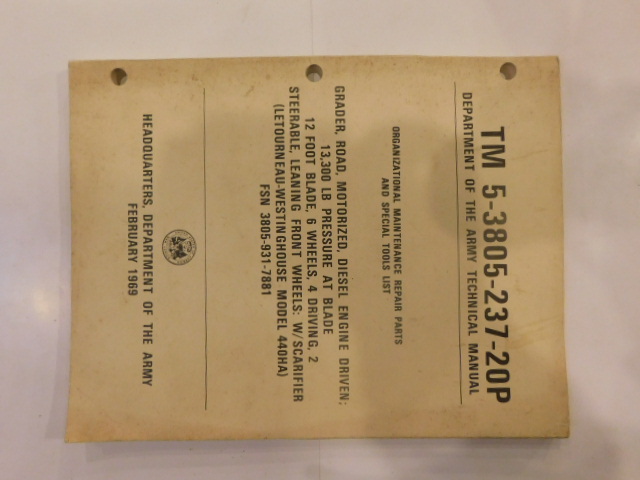 | TM5_3805_211_35 | Manuel Technique Grader Road Motorized Diesel Engine LETOURNEAU-WESTINGHOUSE 220 |