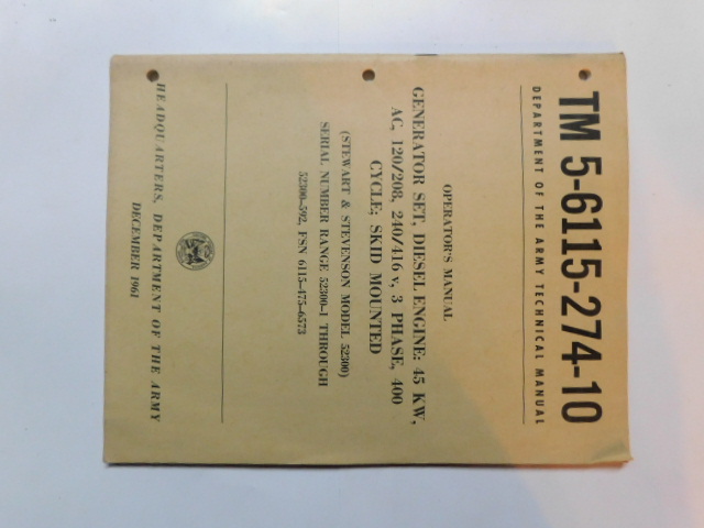 | TM5_6115_274_10_COP | Manuel Technique Generator Set STEWART and STEVENSON 52300 December 1961 (copie) |