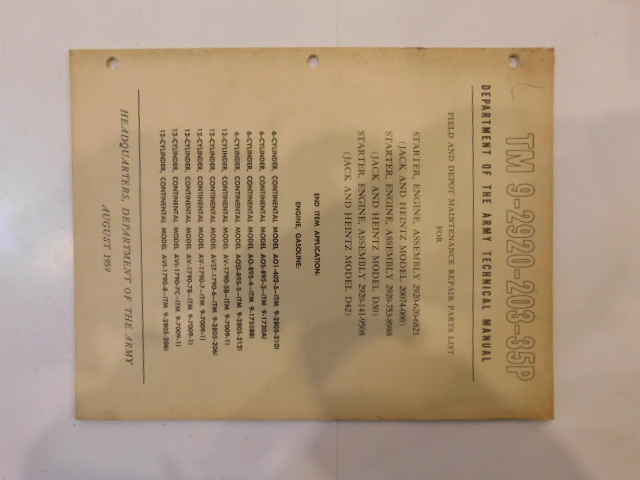 | TM9_2920_203_35P_COP | Manuel Technique Starter Engine Assembly Jack and HEINTZ Models, 1959 (copie) |