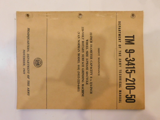 | TM9_3415_210_50_COP | Manuel Technique, 220V Rotary Surface Grinding Machine, VAN NORMAN, 1959 (copie) |