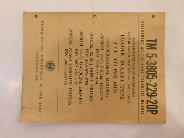 | TM5_3805_229_20P_COP | Manuel Technique, Loader, Bucket Type, BAFRBER-GREENE 82-A -AG, 1961 (copie) |