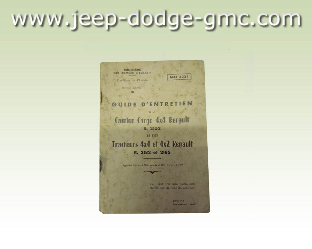 | MAT_3231 | Guide Entretien RENAULT Camion Cargo 4x4 R2152 et Tracteurs 4x4 4x2 R2182 2185 |