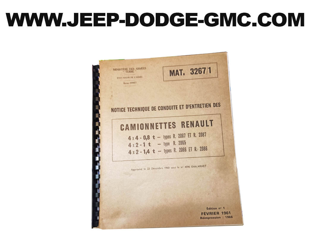 | MAT_3225_COP | GUIDE ENTRETIEN CAMIONNETTES RENAULT 4x4 08t types R2067 et R2087, 1961 (copie) |