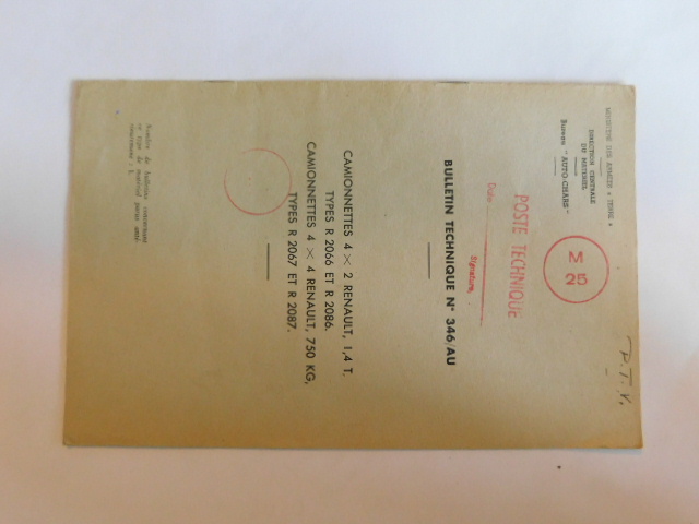 | Z30_BUL_346_COP | Bulletin Technique, Camionnettes Renault R2066, R2086, R2067 et R2087 (copie) |