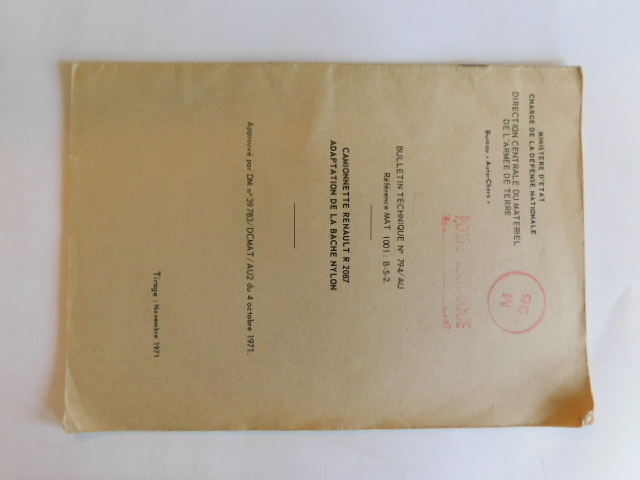 | Z30_BUL_794_COP | Camionnette RENAULT R2087, Adaptation de la Bache Nylon, Novembre 1971 (copie) |