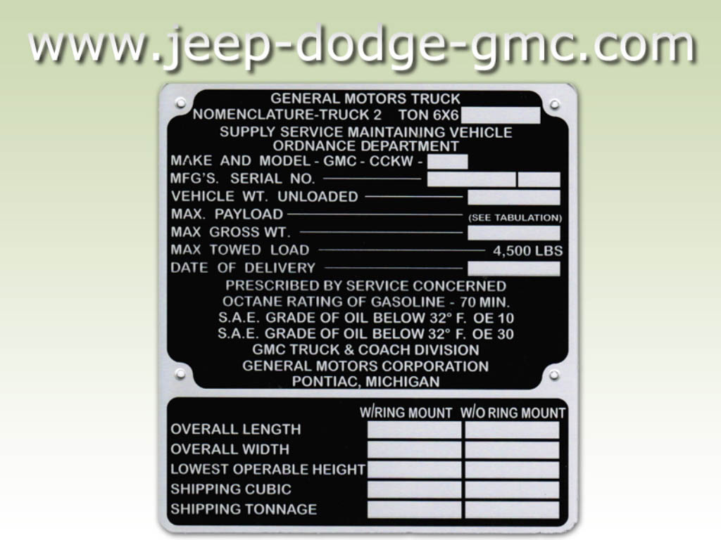 | GM11757_NOS | PLAQUE LAITON INSTRUCTION TRANSMISSION GMC AVEC TREUIL |