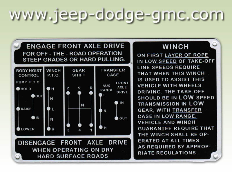 | ZGM220019 | PLAQUE INSTRUCTION TRANSMISSION GMC AVEC TREUIL et HOIST |
