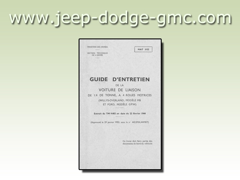| MAT_3152_1962_COP | Guide d'entretien Voiture liaison 1/4t 4x4, WILLYS-OVERLAND MB, FORD GPW (copie) |