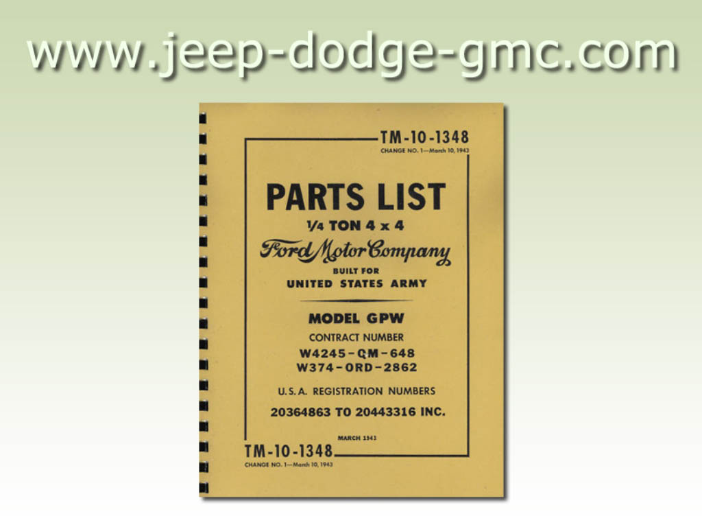 | SNL_G503_ORD_7 | Catalogue pieces JEEP WILLYS MB Ford GPW 1/4ton 4X4 Truck Command Reconaissance |
