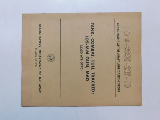 | LO9_2350_215_10 | Lubrification Order, Tank, Combat, Full-Track, 105mm, M60, August 1960 |