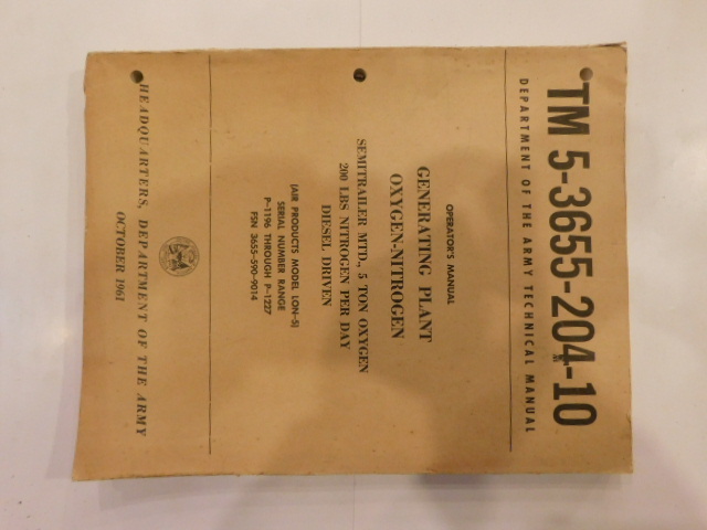 | TM5_3655_204_10_COP | Manuel Technique Generating Plant Oxygen-Nitrogen AIR PRODUCTS LON5 1961 (copie) |