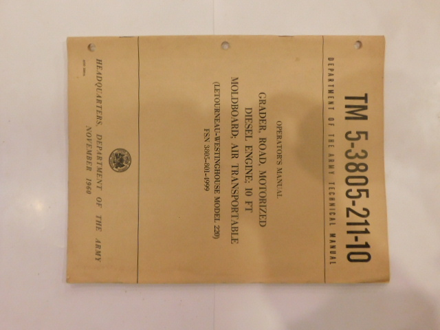 | TM5_3805_211_10 | Manuel Technique Grader Road Motorized Diesel Engine LETOURNEAU-WESTINGHOUSE 220 |