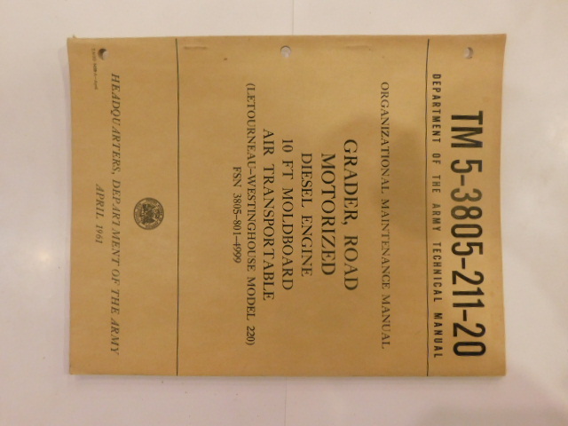 | TM5_3805_211_20 | Manuel Technique Grader Road Motorized Diesel Engine LETOURNEAU-WESTINGHOUSE 220 |
