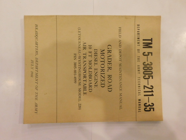 | TM5_3805_211_35 | Manuel Technique Grader Road Motorized Diesel Engine LETOURNEAU-WESTINGHOUSE 220 |