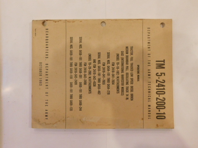 | TM5_2410_208_10 | Manuel Technique Tractor Full-Track Low Speed Diesel Driven INTER HARVESTER 1962 |