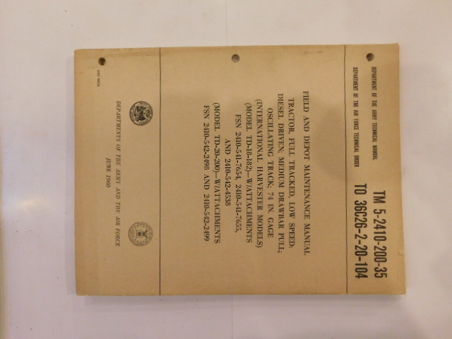 | TM5_2410_200_35 | Manuel Technique Tractor Full-Track Low Speed Diesel Driven INTER HARVESTER 1960 |