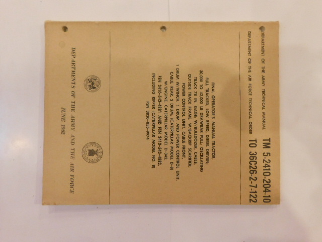 | TM5_2410_204_20 | Manuel Technique Tractor Full-Track Low Speed Diesel Driven CATERPILLAR, 1959 |