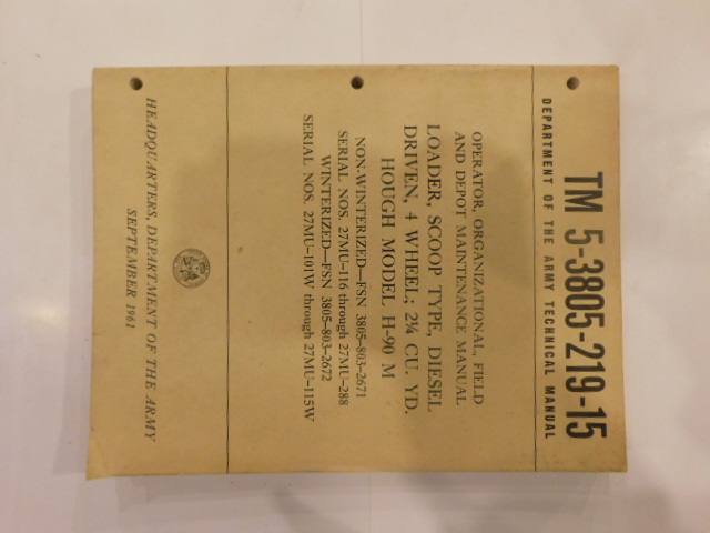 | TM5_3805_219_15 | Manuel Technique Loader Scoop Type Diesel Driven 4-wheel 2 1/4 CU YD HOUGH H90-M |