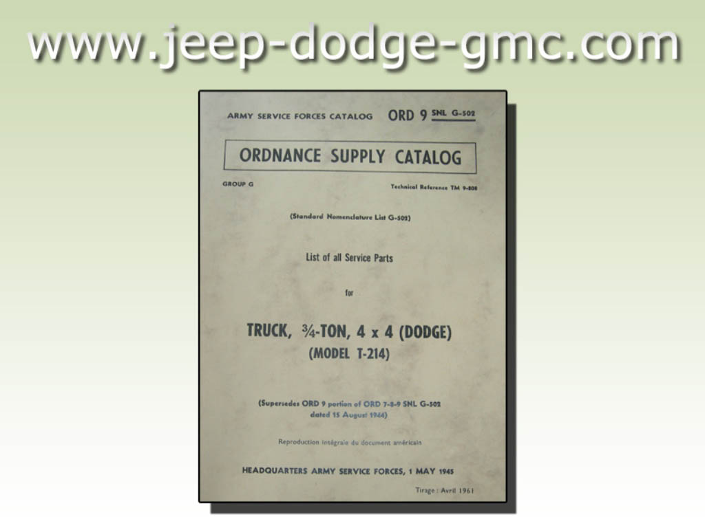 | SNL_G502_ORD_9_T1_COP | Catalogue de pieces, DODGE, 3/4 ton, 4X4 Truck T-214, Tome 1/2 (copie) |