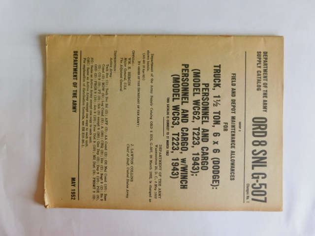 | SNL_G507_ORD_8_CHG1_COP | Catalogue de pieces, Truck 1 1/2-ton 6x6 DODGE, Pers Cargo, w/winch 1952 (copie) |