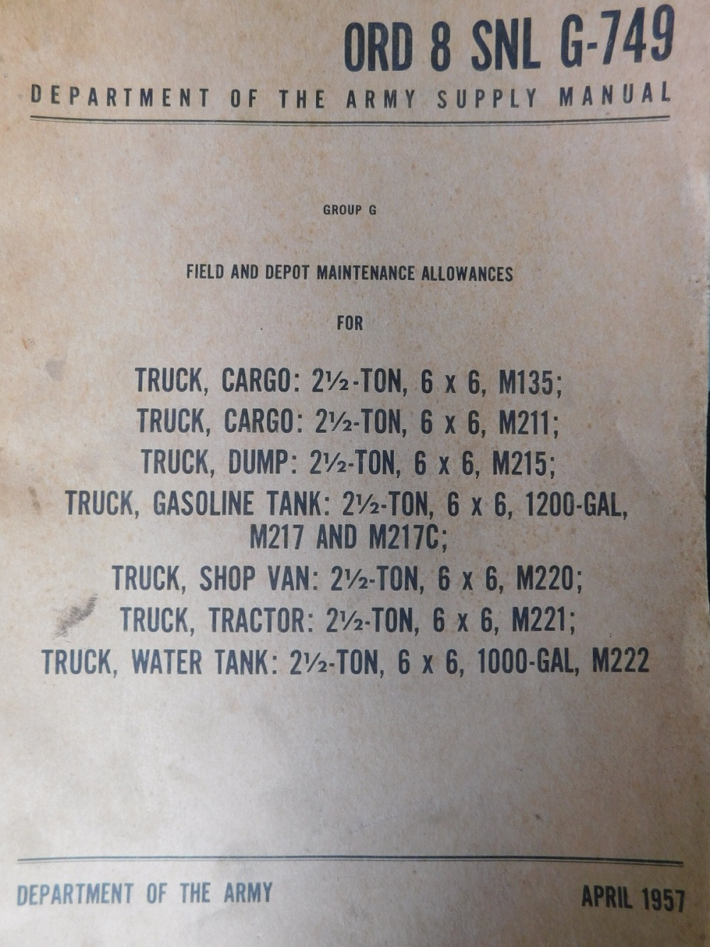 | SNL_G749_ORD_8 | Catalogue de pieces, GMC, 2 1/2-ton, 6X6 Truck Cargo, M135, 1957 |