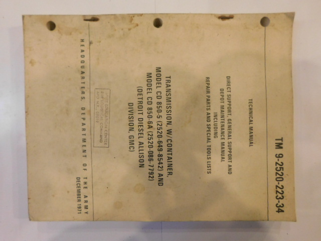 | TM9_2520_223_34 | Manuel Technique Transmission W/Container CD 850-5 et -6A ALLISON DIV. GMC 1971 |