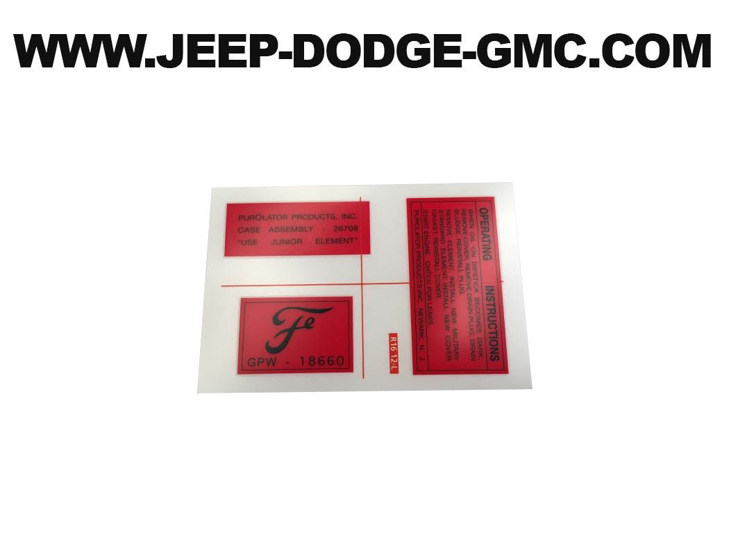 | ZWOA010009 | DECALCOMANIE PUROLATOR Filtre huile FORD GPW |