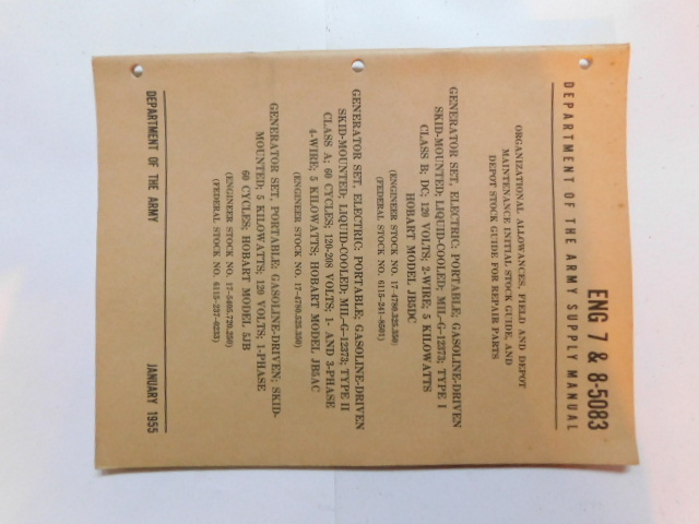 | ENG_7_8_9_5260 | Generator Set, Elec. MIL-G-12373, HOLLINGSWORTH CE 100AC-WK4, May 1956 |