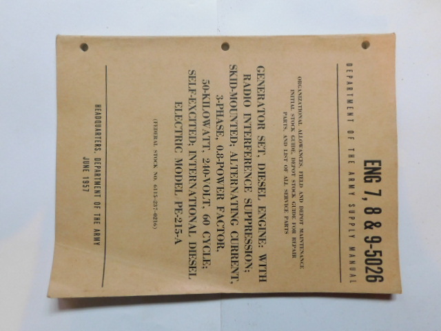 | ENG_7_8_9_5026 | Generator Set, Diesel Engine, INTERNATIONAL DIESEL ELECTRIC PE-215-A June 1957 |