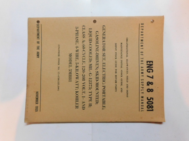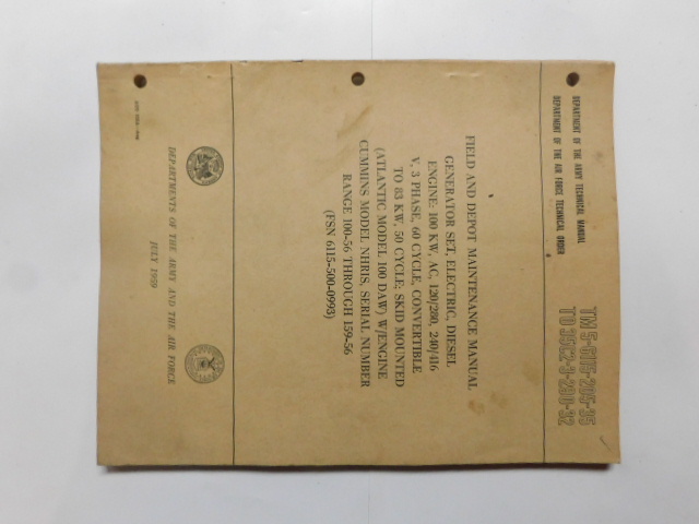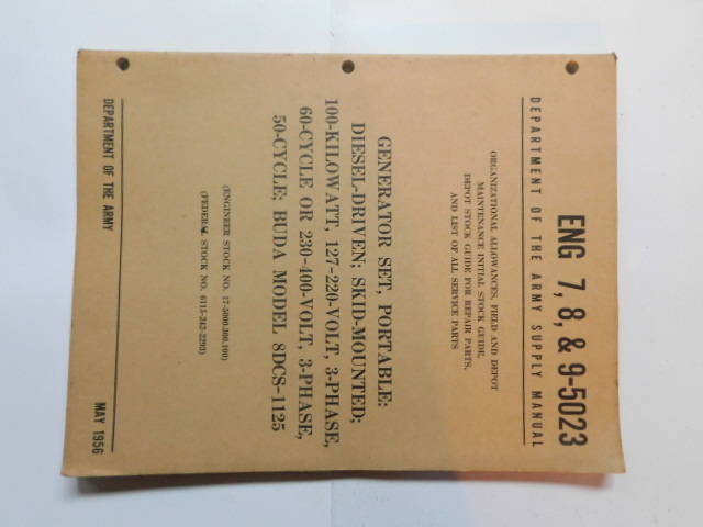 | TM5_5007 | Manuel Technique Generator Set Electric Portable Diesel Driven Skid Mounted 1955 |