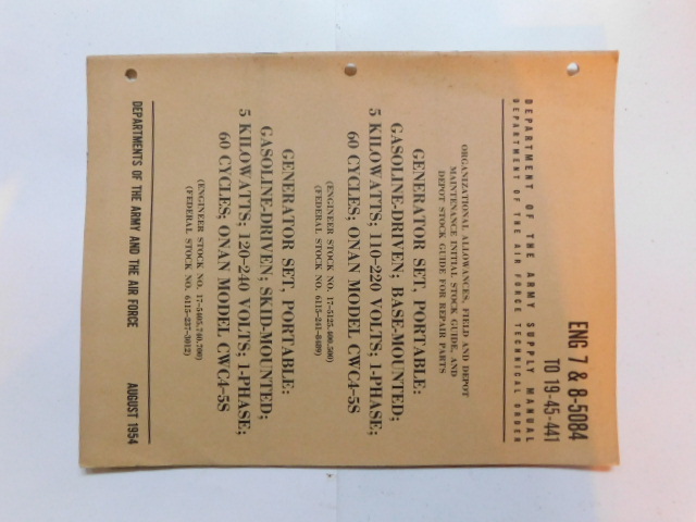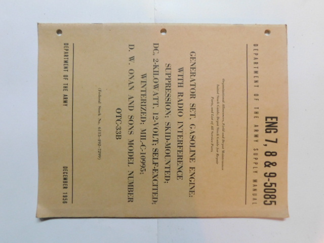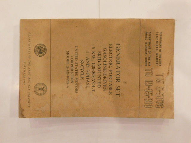 | TM5_5076 | Manuel Technique Generator Set Electric Portable US MOTORS CORP 5-US-1085-A 1954 |
