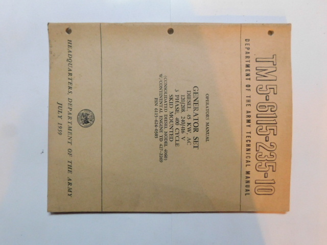 | TM5_6115_235_10_COP | Manuel Technique Generator Set CONSOLIDATED DIESEL Model 4060, July 1959 (copie) |