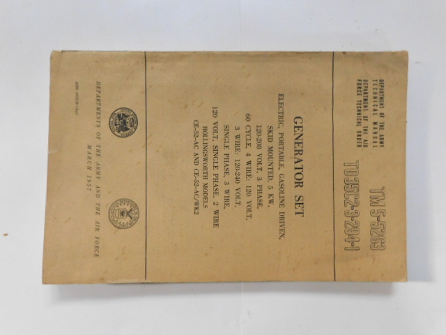 | TM5_5263 | Manuel Technique Generator Set, HOLLINGSWORTH CE52AC and CE52AC/WK2, March 1957 |