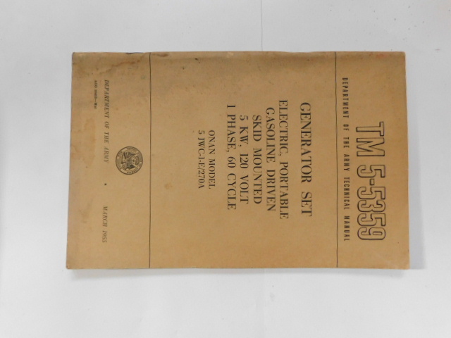 | TM5_5359 | Manuel Technique, Generator Set, Electric, ONAN Model 5JWC-1-E/270A, March 1955 |