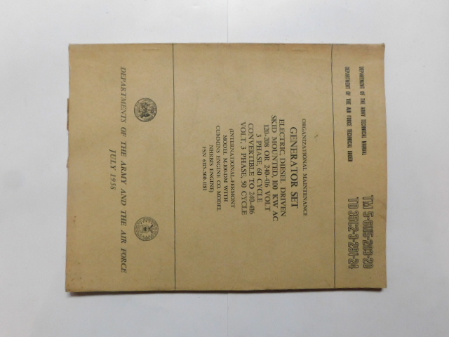 | TM5_6115_203_20 | Manuel Technique, Generator Set, INTERNATIONAL-FERMONT Model M100DM, July 1958 |