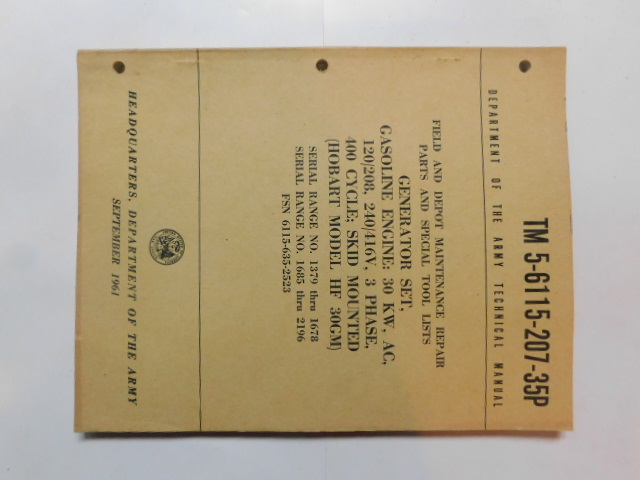 | TM5_6115_207_35P_1961_COP | Manuel Technique, Generator Set, HOBART Model HF30GM, September 1961 (copie) |
