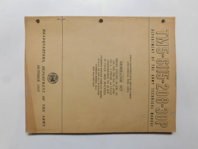 | TM5_6115_208_45P | Manuel Technique, Generator Set, CUMMINS ENGINE CO. JS6G (60KW-AC), October 1959 |