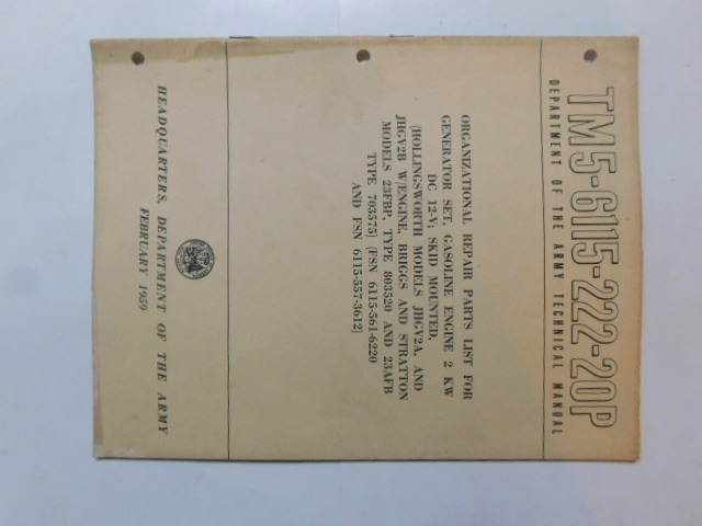 | TM5_6115_222_20P | Manuel Technique, Generator Set, HOLLINGSWORTH JHGV-2A and -2B, February 1959 |