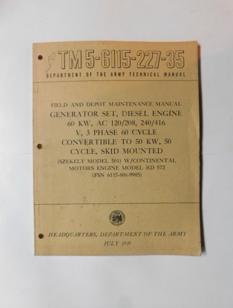 | TM5_6115_227_35 | Manuel Technique, Generator Set, Diesel Engine, SZEKELY Model 501, July 1959 |