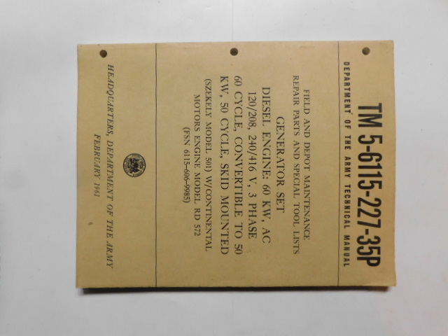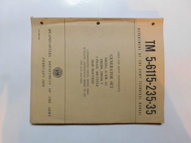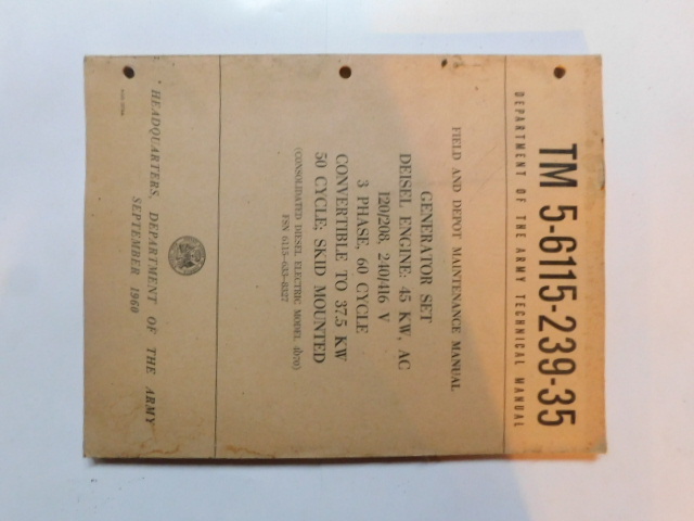 | TM5_6115_302_35 | Manuel Technique, Generator Set, Diesel Engine, HARNISCHFEGER 400A, October 1961 |